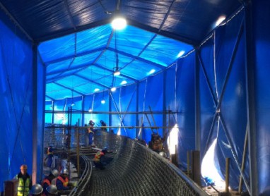 礦業用篷房對露天煤場進行全封閉改造,有效控制粉塵污染,實現國家環保要求,綠色生產。